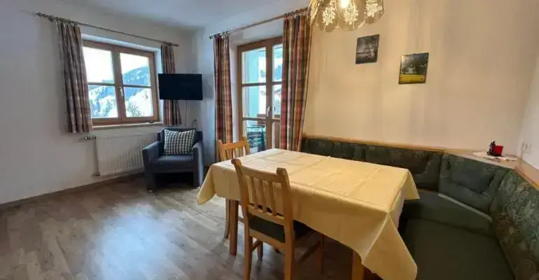 Unsere beiden gemütlich eingerichteten Appartements bestehen aus 1 Wohnküche, 2 Schlafzimmern, Vorraum, Bad und WC. Lebensmittelgeschäft, Tourismusinformation und Restaurants in unmittelbarer Nähe. Der Skilift ist 300m entfernt, die Skiabfahrt führt Sie direkt zu unserem Haus. Die Skibushaltestelle für den Anschluss in die großen Skigebiete befindet sich direkt nebenan. Bettwäsche, Geschirr- und Handtücher sind vorhanden. Haustiere nicht erlaubt.