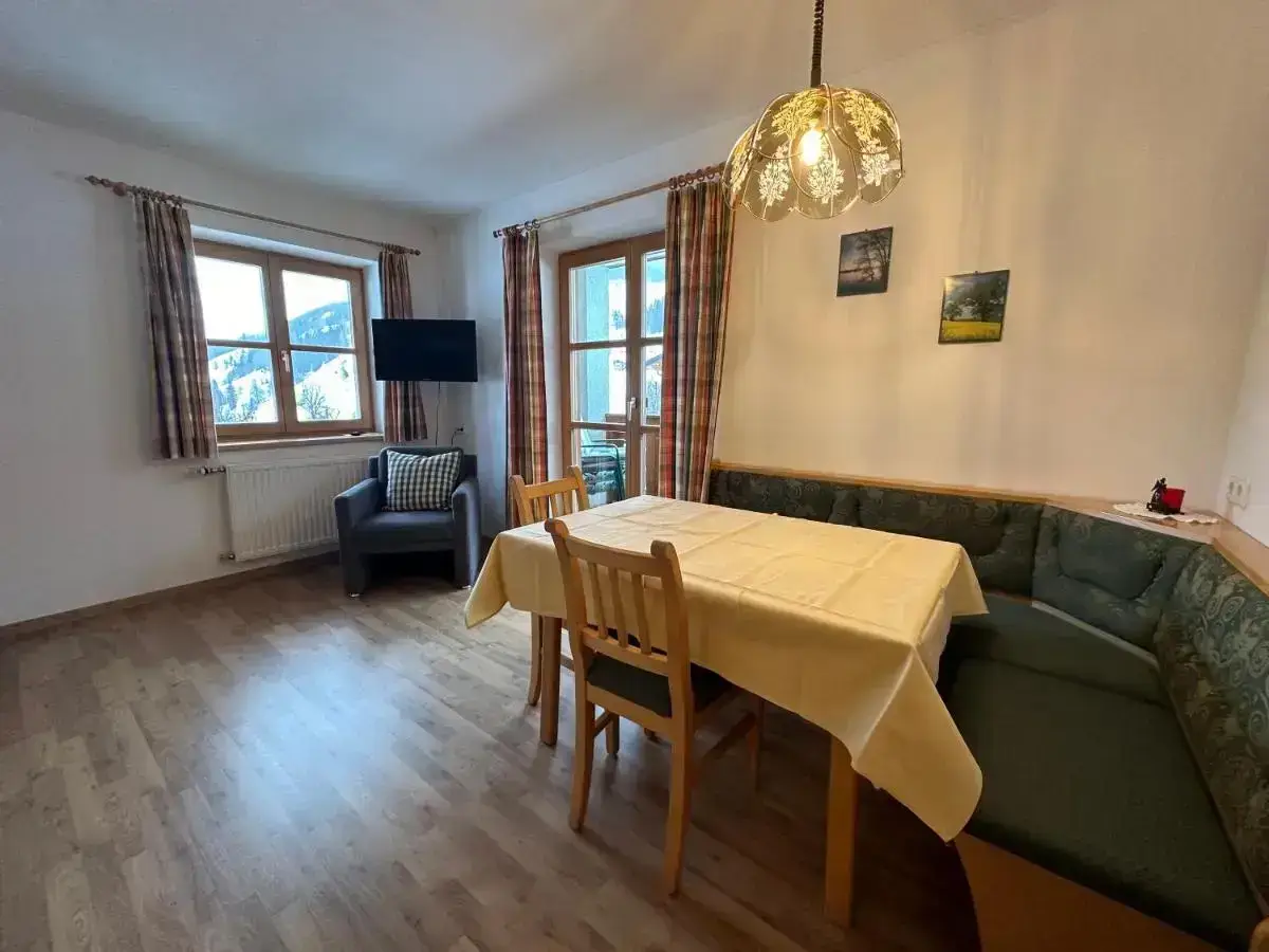 Unsere beiden gemütlich eingerichteten Appartements bestehen aus 1 Wohnküche, 2 Schlafzimmern, Vorraum, Bad und WC. Lebensmittelgeschäft, Tourismusinformation und Restaurants in unmittelbarer Nähe. Der Skilift ist 300m entfernt, die Skiabfahrt führt Sie direkt zu unserem Haus. Die Skibushaltestelle für den Anschluss in die großen Skigebiete befindet sich direkt nebenan. Bettwäsche, Geschirr- und Handtücher sind vorhanden. Haustiere nicht erlaubt.