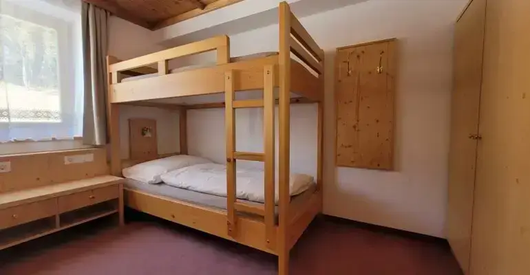 Appartement "Berg" (2-5 Pers.): 1 Schlafzimmer mit 1 Doppelbett und 1 Schlafzimmer mit 1 Einzelbett und 1 Stockbett.