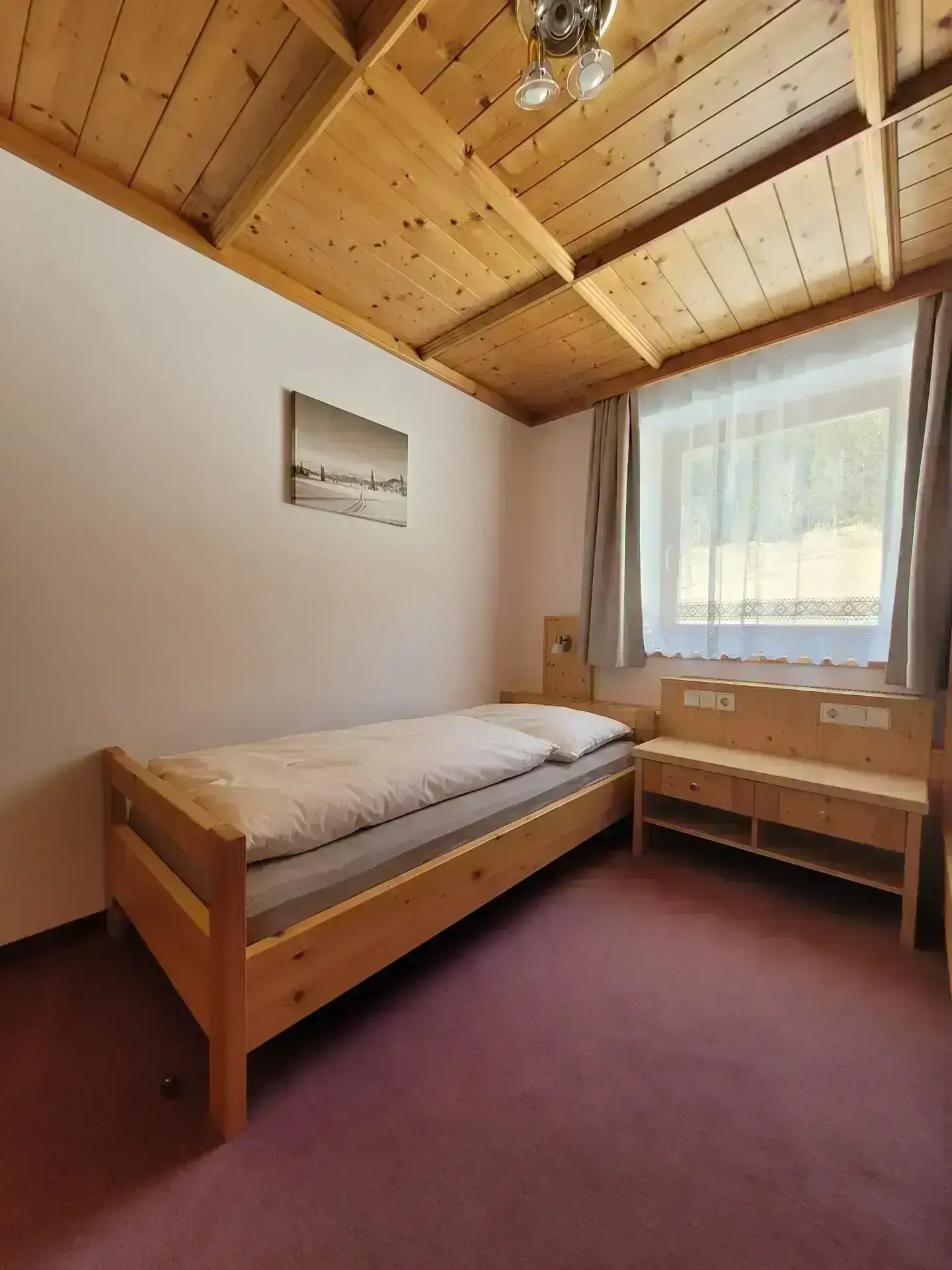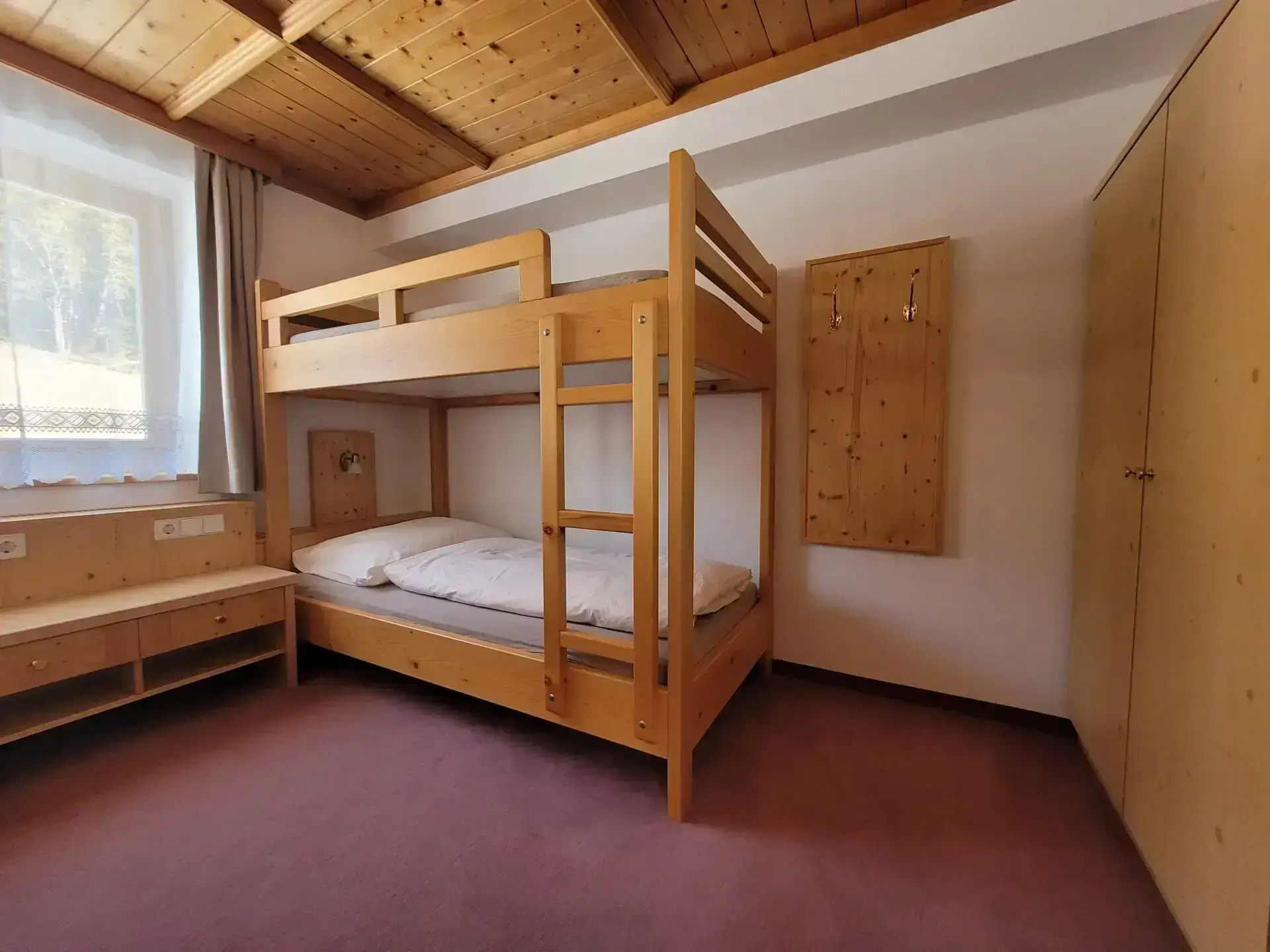 Appartement "Berg" (2-5 Pers.): 1 Schlafzimmer mit 1 Doppelbett und 1 Schlafzimmer mit 1 Einzelbett und 1 Stockbett.